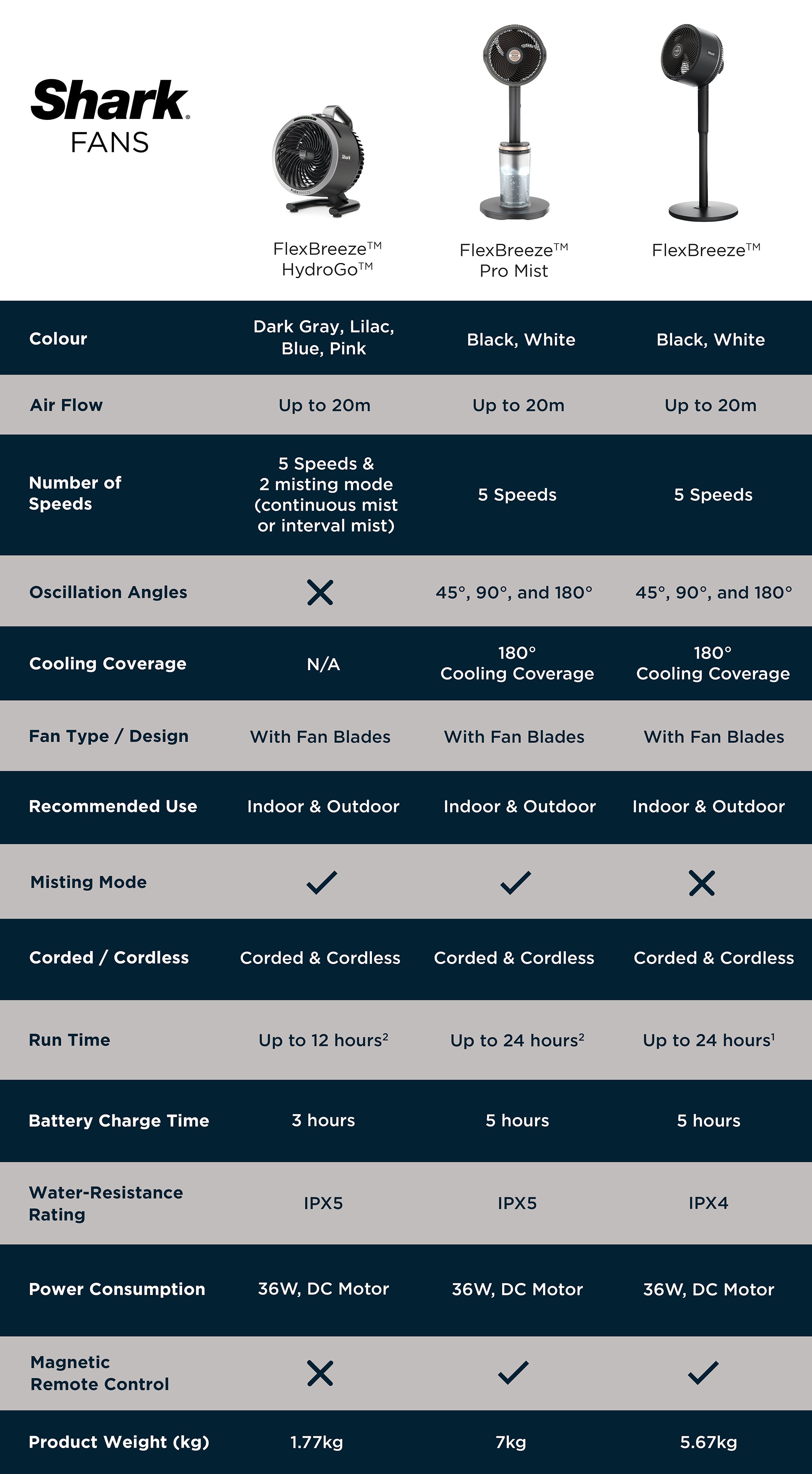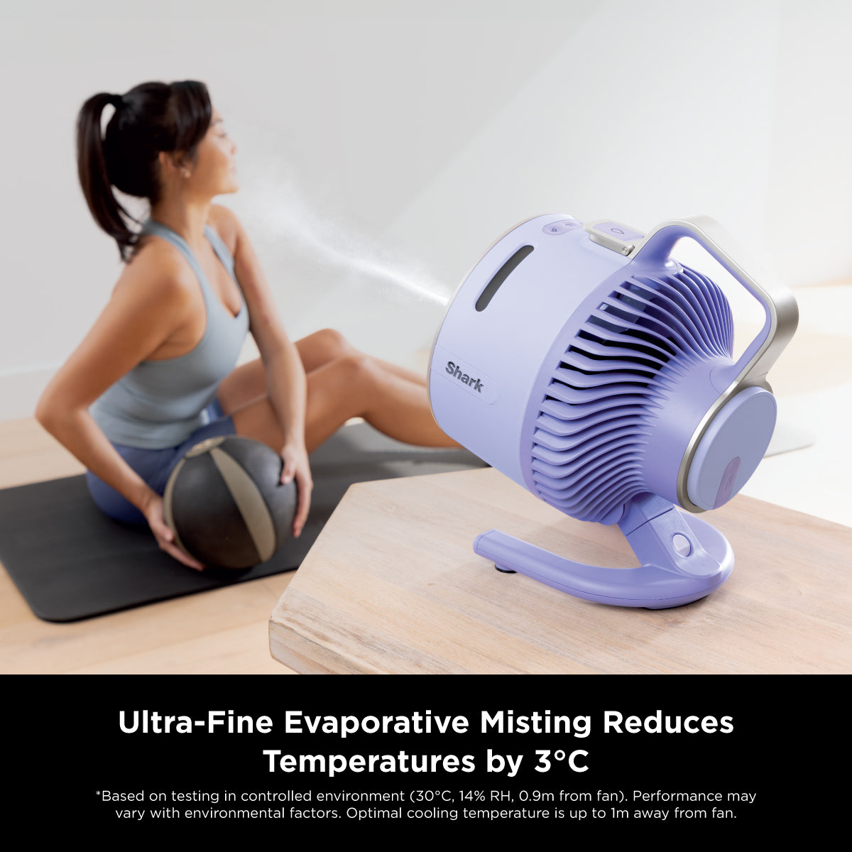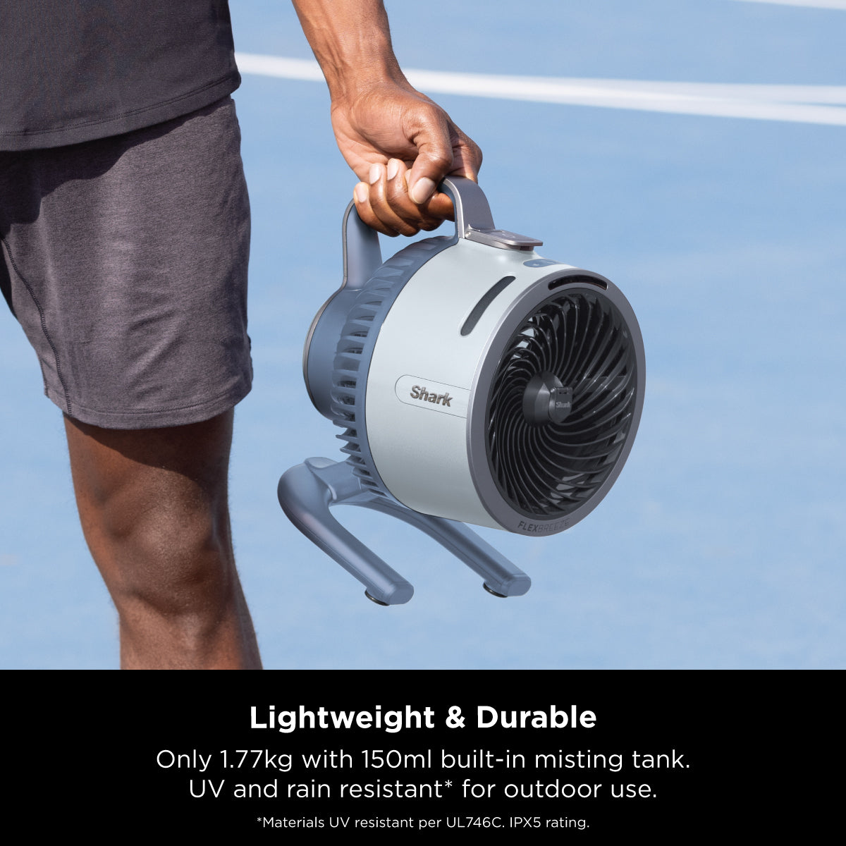 Stay cool anywhere with the Shark HydroGo Misting Fan, your portable cooling solution for both indoor and outdoor comfort.