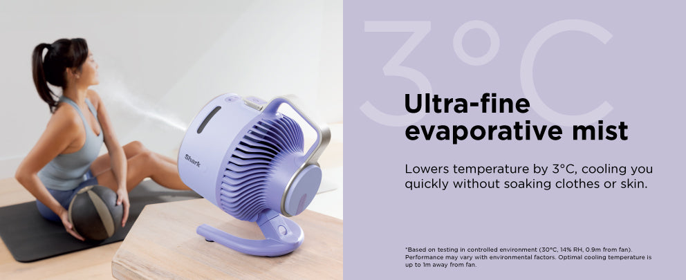 Dual-function cooling: Air + Mist Easily switch between powerful airflow or combine it with ultra-fine misting to keep you cool, indoors and outdoors |
