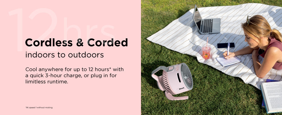 Up to 20m of Portable Cooling Power* Stay cool on the go with powerful airflow and refreshing mist, inside and out. *Based on highest fan speed. |