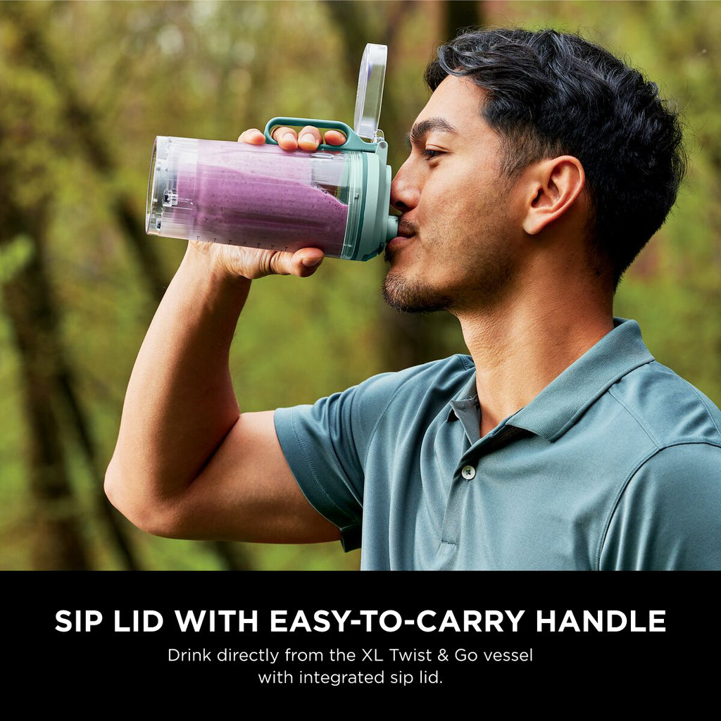 Drink directly from the Twist & Go vessel with integrated sip lid. Take your drink to-go with a comfortable silicone handle for convenient carrying.