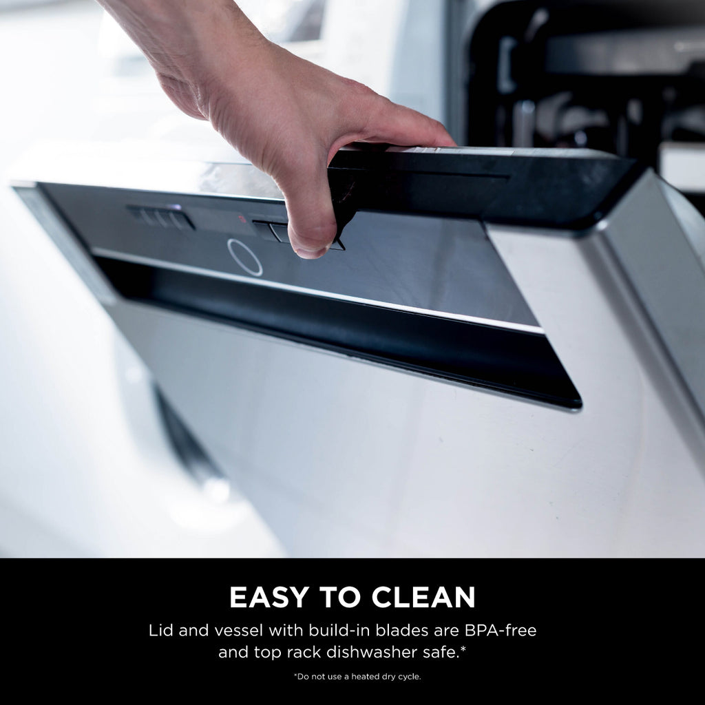 Lid and vessel with built-in CrushBlade™ are dishwasher safe. The blender can also self-clean with one blend cycle using water and a drop of dish soap. Vessel is BPA free.