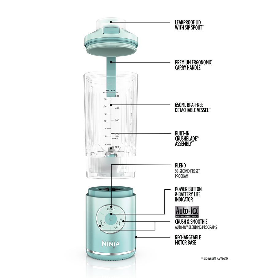 Ice crushing power of a corded blender now in a cordless blender. Sharp CrushBlade™ pulverises through ice and tough ingredients with the performance of a Ninja corded blender.