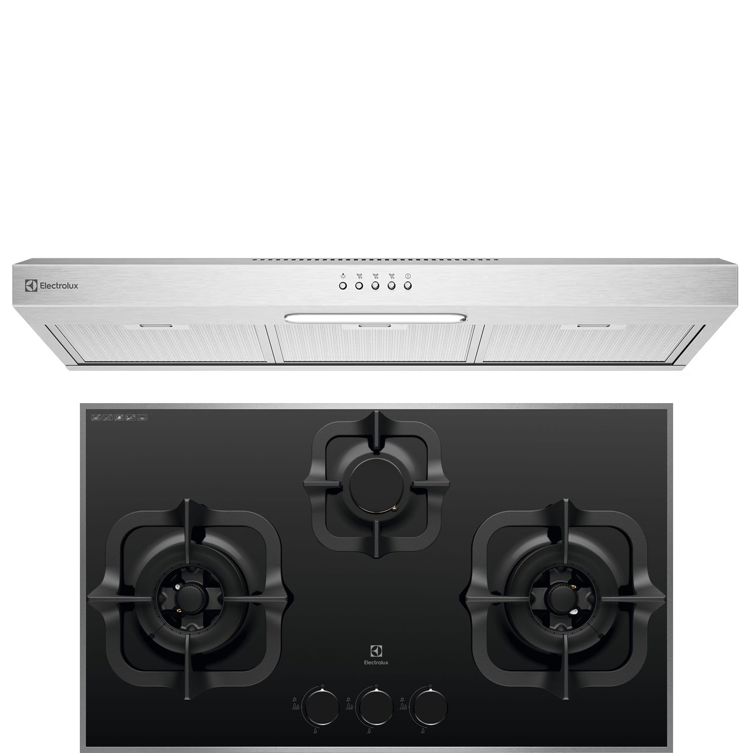 BUNDLE: ECF9214X 90CM SLIMLINE HOOD & EGT7836BEP 78CM 3-BURNER TG GAS HOB