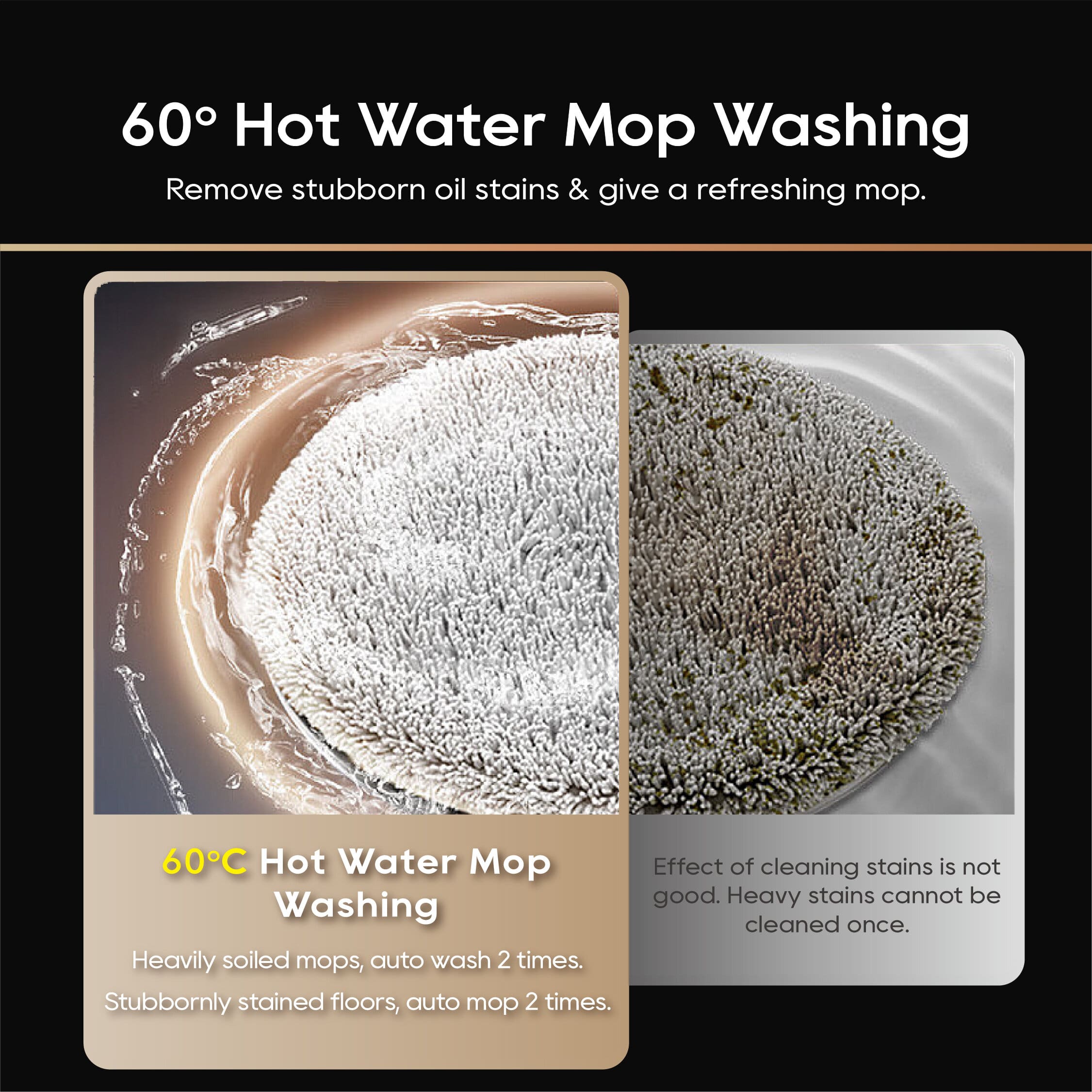 With a newly added duo scraper, the self-cleaning base station simultaneously washes both the mops and the washboard with 60℃ hot water, reducing stain residue, minimizing odor, and decreasing the need for manual cleaning. It frees your hands, eliminating the need for manual maintenance in your daily life.
