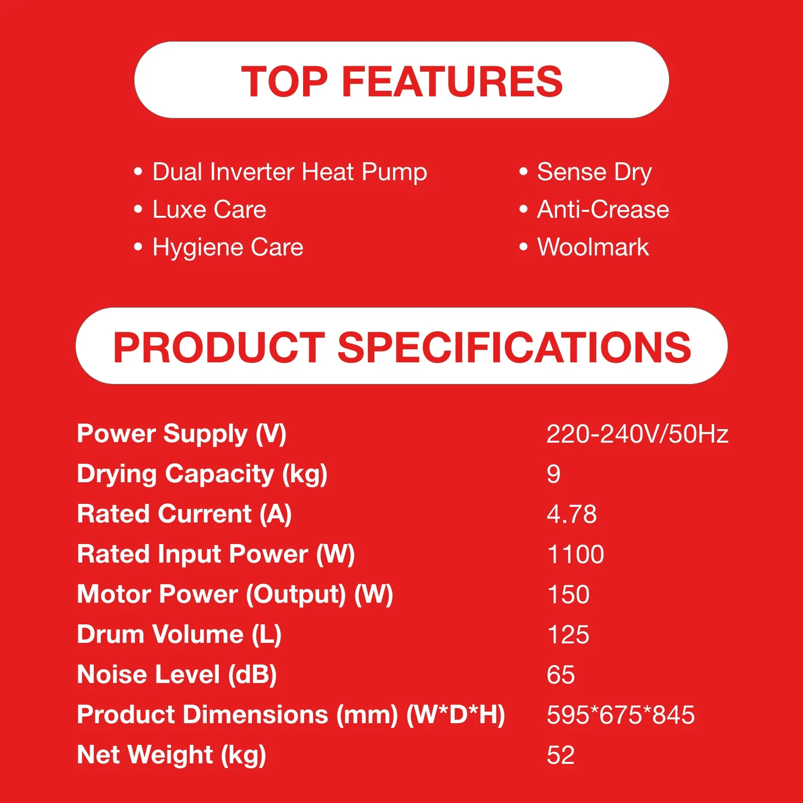 TD-T25BS100HWS(MG) 9KG HEAT-PUMP DRYER