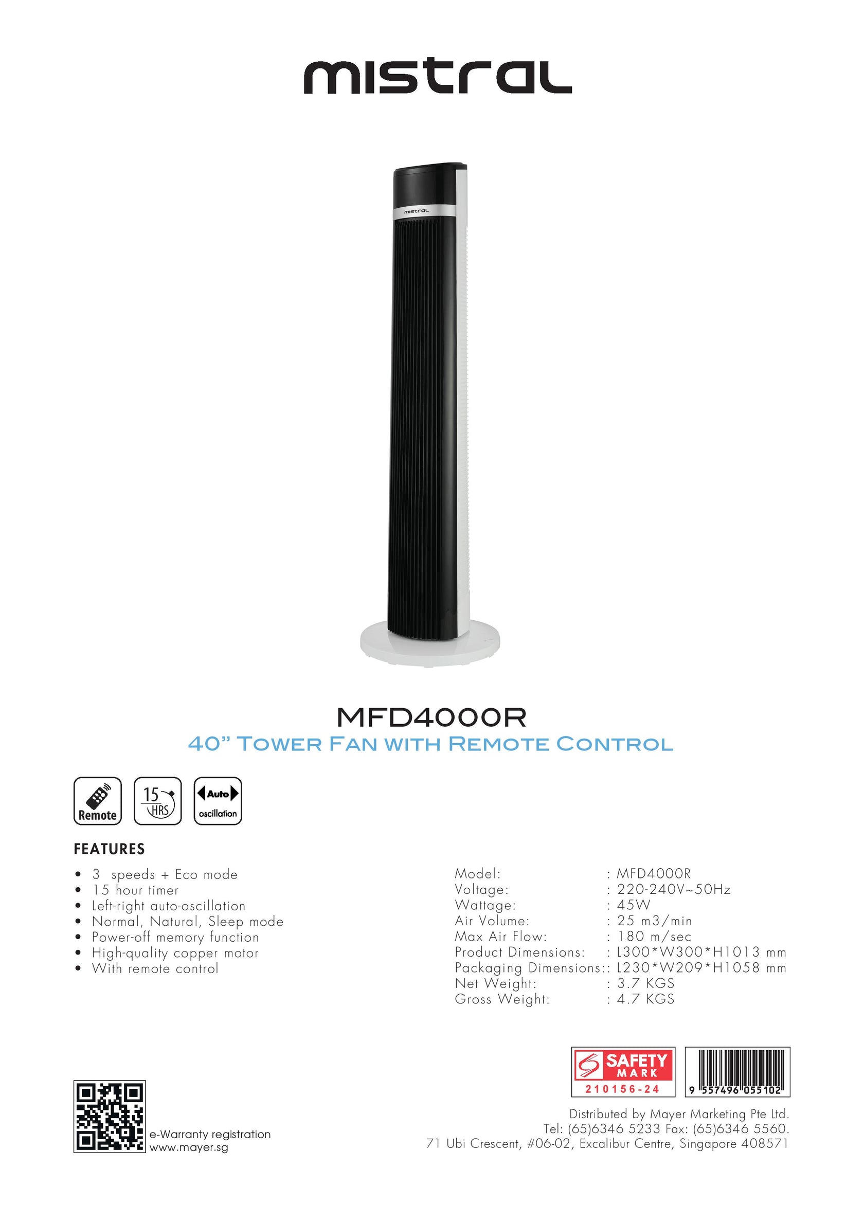 MFD4000R 40" TOWER FAN WITH REMOTE