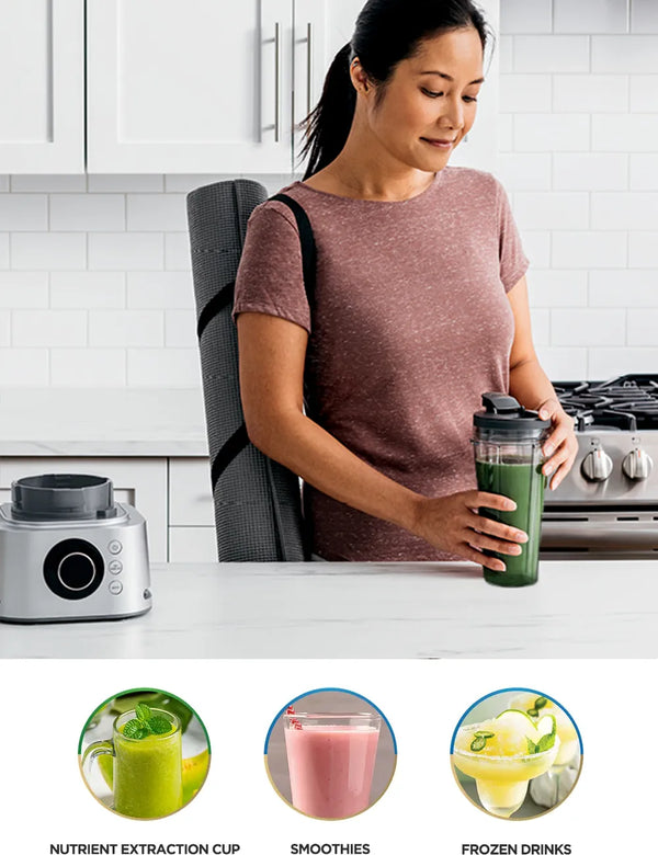 Create smoothies and juices in the Nutri Power Cup. Create smoothie bowls in the Power Smoothie Bowl and grind in the Coffee and Spice Grinder.