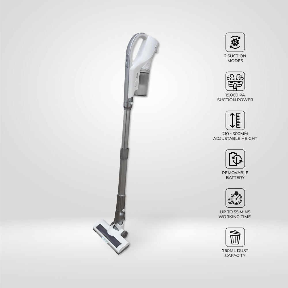 NNIO's Cordless Stick Vacuum (N6630SVC) delivers 19,000 PA suction power and up to 55 minutes of cordless cleaning. Featuring a removable battery for quick swaps, adjustable height for comfort and versatile attachments, it handles everything from floors to tight spaces. With effortless maintenance and powerful performance, it’s the perfect tool to keep your home spotless with ease.