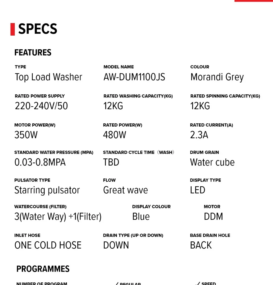 AW-DUK1300KS 12KG TOP LOAD WASHER