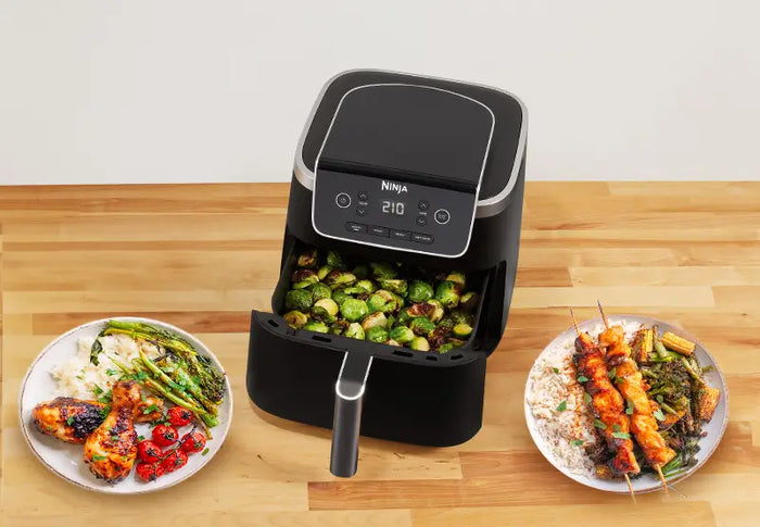 Air Fry, Roast, Reheat and Dehydrate your way to delicious homemade food. This digital air fryer is easy to control, with a wide temperature range of 40-210°C, and a countdown timer which automatically stops cooking when time is up.