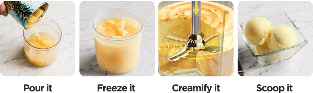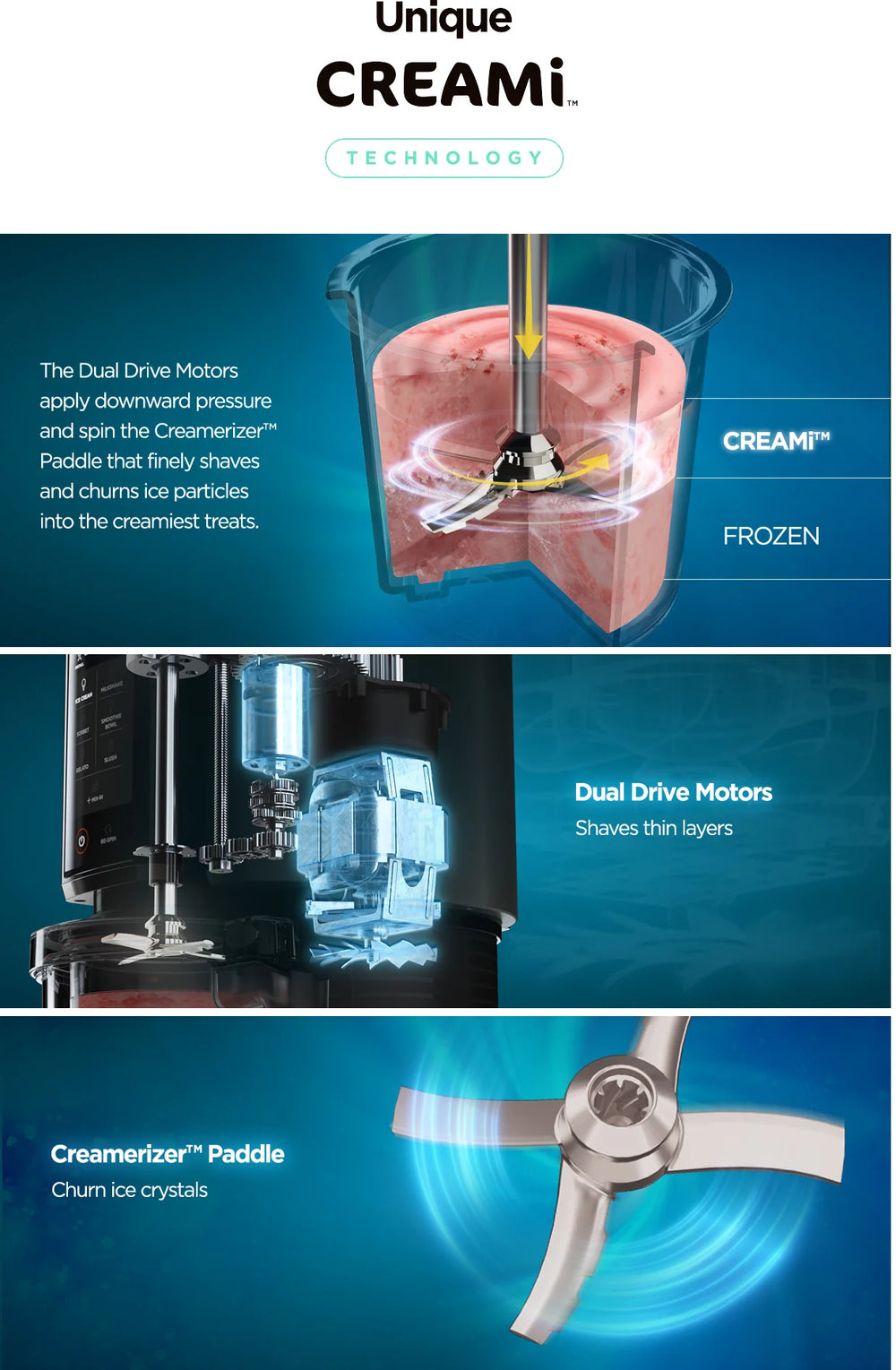 Creamify™ technology enables the CREAMi™ to break down a uniform frozen block into an incredibly smooth, creamy texture.