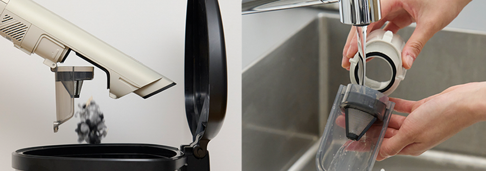 Press the release button to empty the dust cup and rinse the dust cup and filter with water - it's that simple!