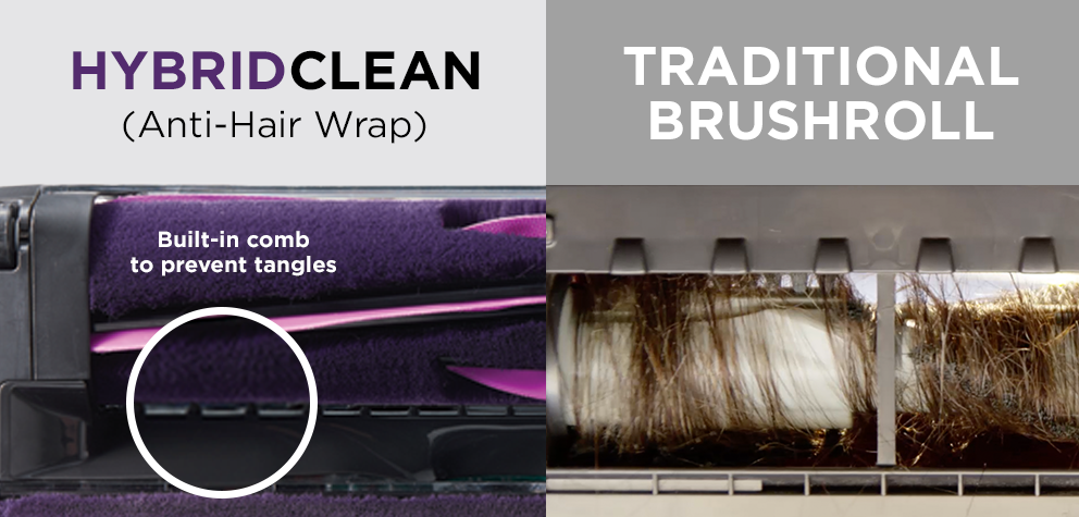 Shark’s Anti Hair Wrap Technology uses a built-in comb to actively remove hair from the brushroll as it spins, preventing tangles and maintaining strong cleaning performance. This self-cleaning system works on both long and short hair, ensuring continuous suction without manual hair removal.