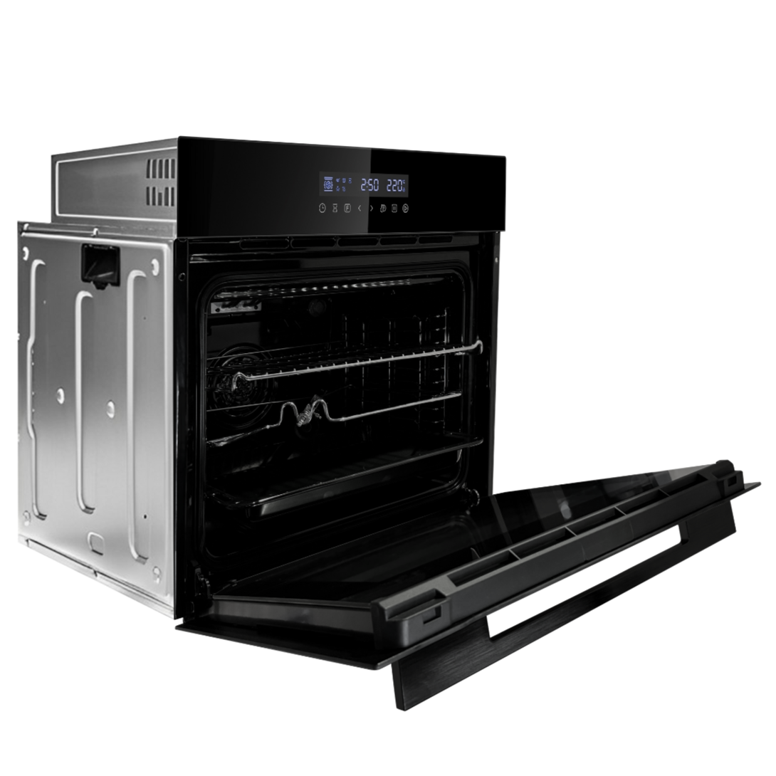 Discover the 60cm Built-in Oven with 82L capacity, touch control, removable glass door, Rotisserie, Meat Probe, 7 Cooking Functions, Catalytic Cleaning, and a soft-closing door for effortless cooking.