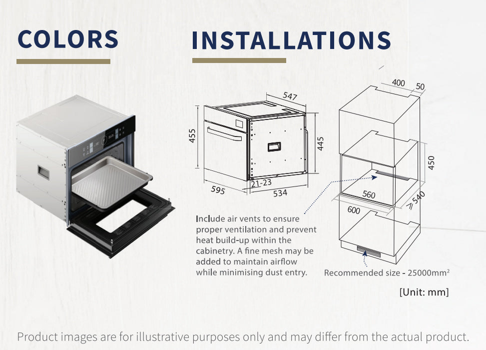 | Accessories | Wire Rack / Baking Tray / Steam Tray / Air Fry Tray / Oven Glove / Water Dropper |