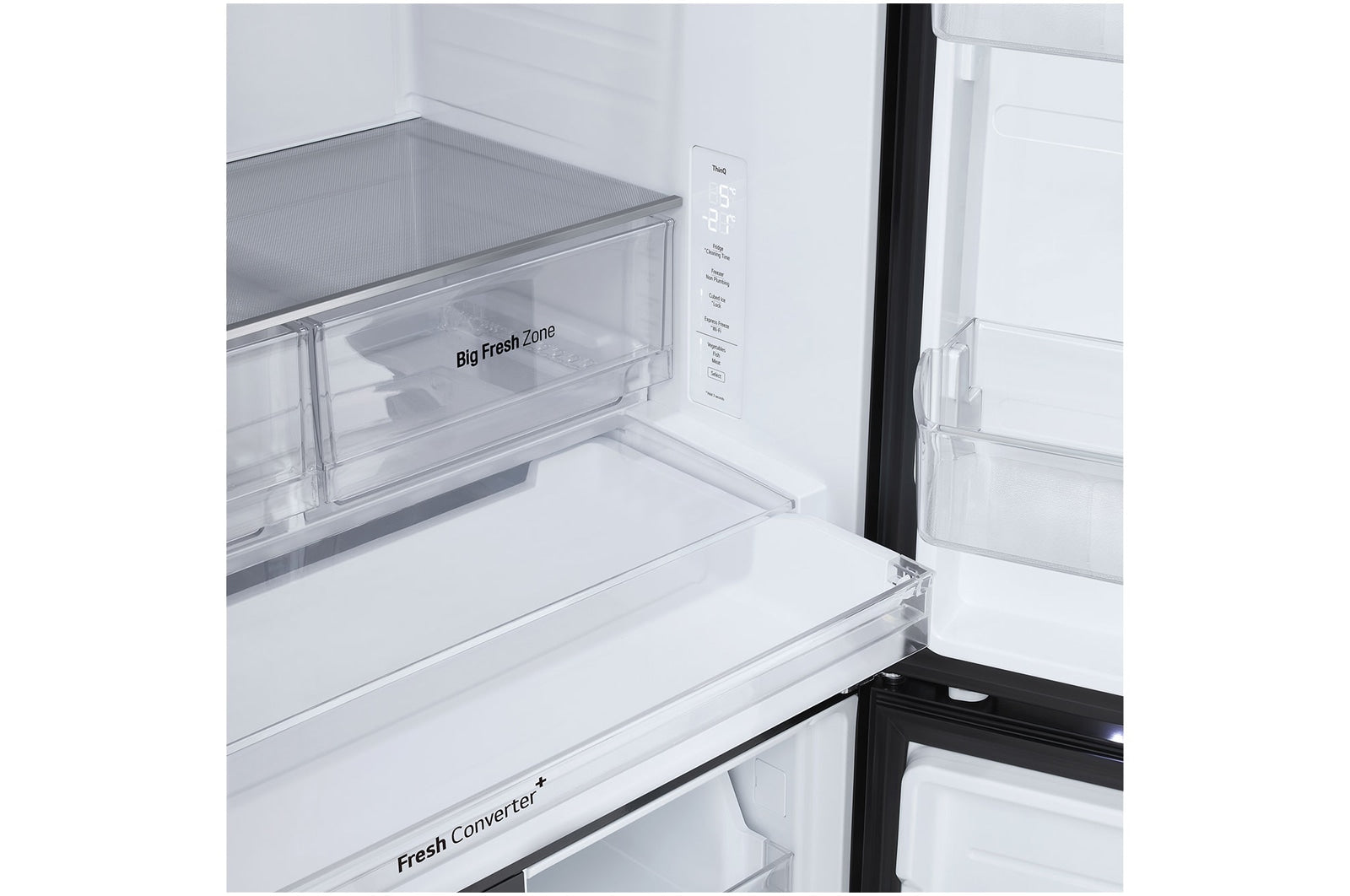 The *LG ThinQ™ app gives you smart fridge monitoring and allows you to activate the 'Express Freeze' feature with just a tap of a button.