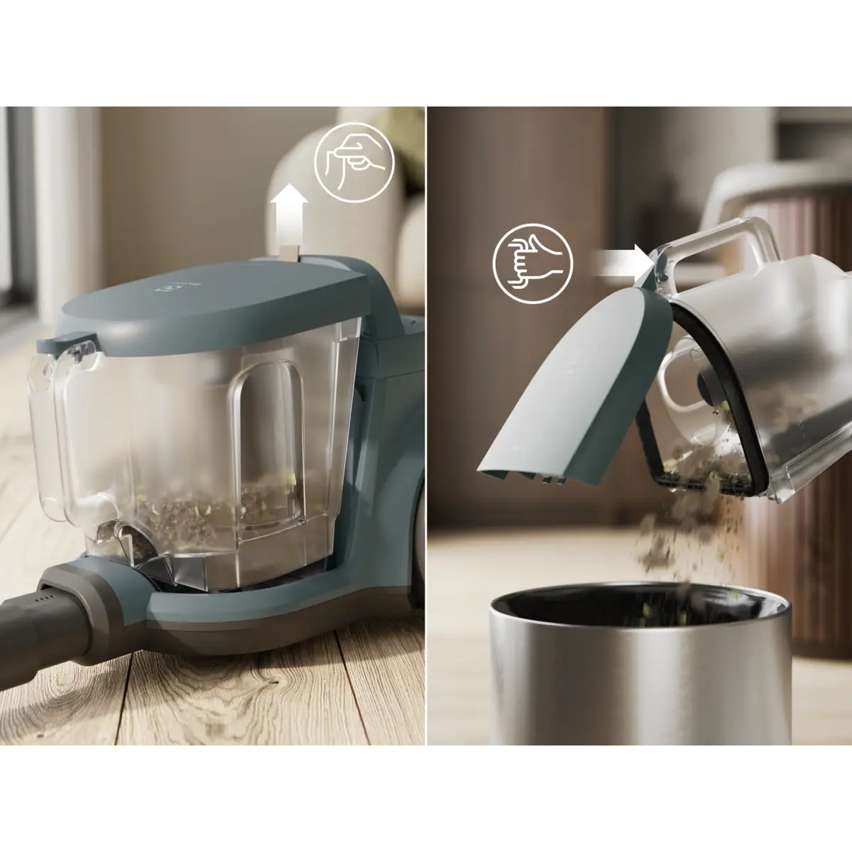 Easy emptying without making a mess The messiest part of vacuuming just got easier and cleaner. Simply empty the bin with one hand, designed for hassle-free disposal and minimal contact with dust from start to finish. |