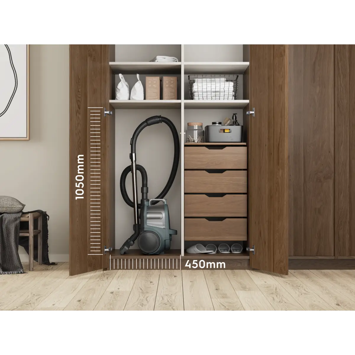 Ergonomic design meets compactness Make cleaning day easier with the ergonomically designed cleaner. Experience effortless movement with large wheels, a compact size, and a 8-metre long action radius. Its compact design also ensures convenient storage when not in use. |