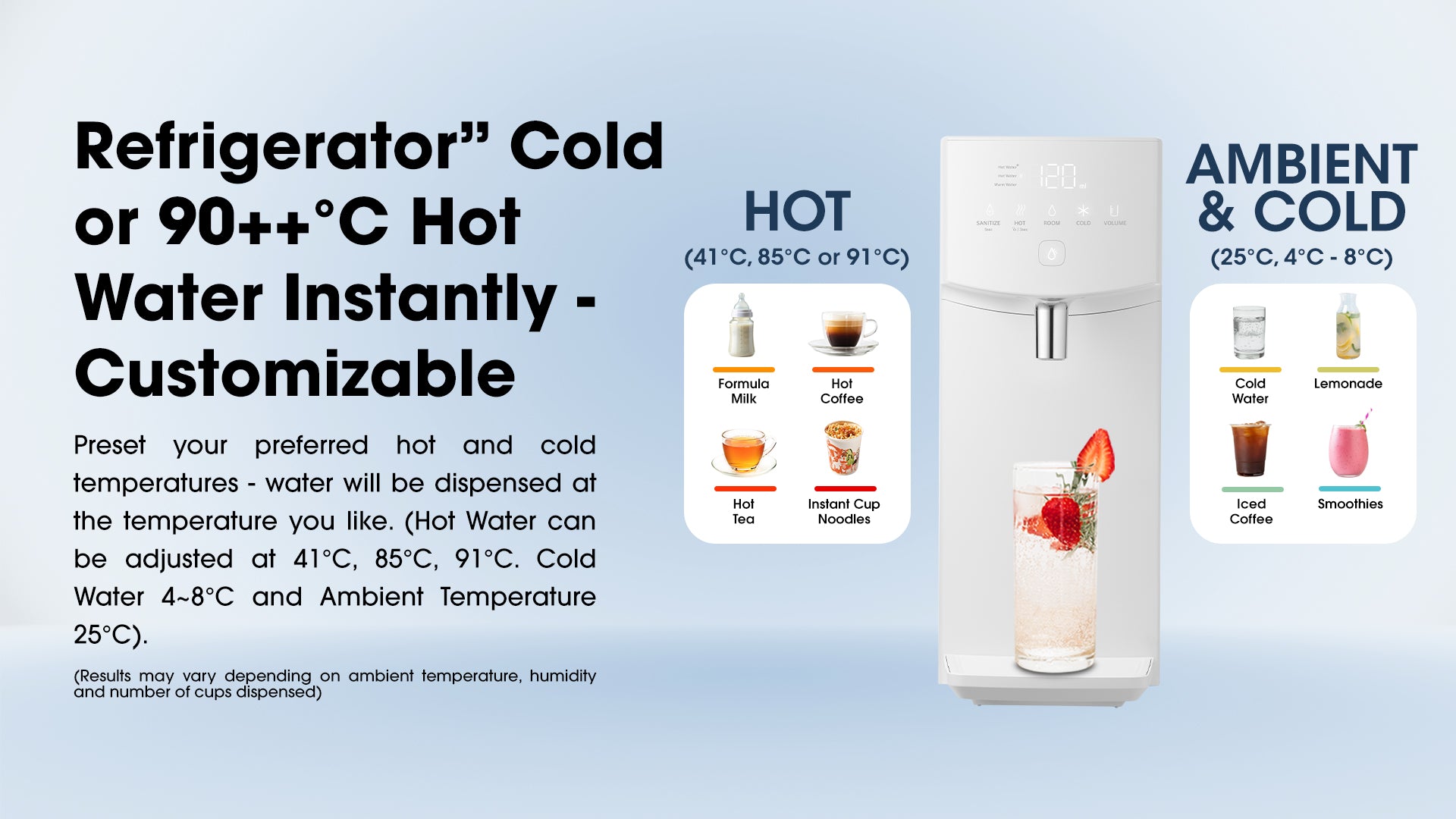 Refrigerator” Cold or 90++°C Hot Water Instantly - Customizable