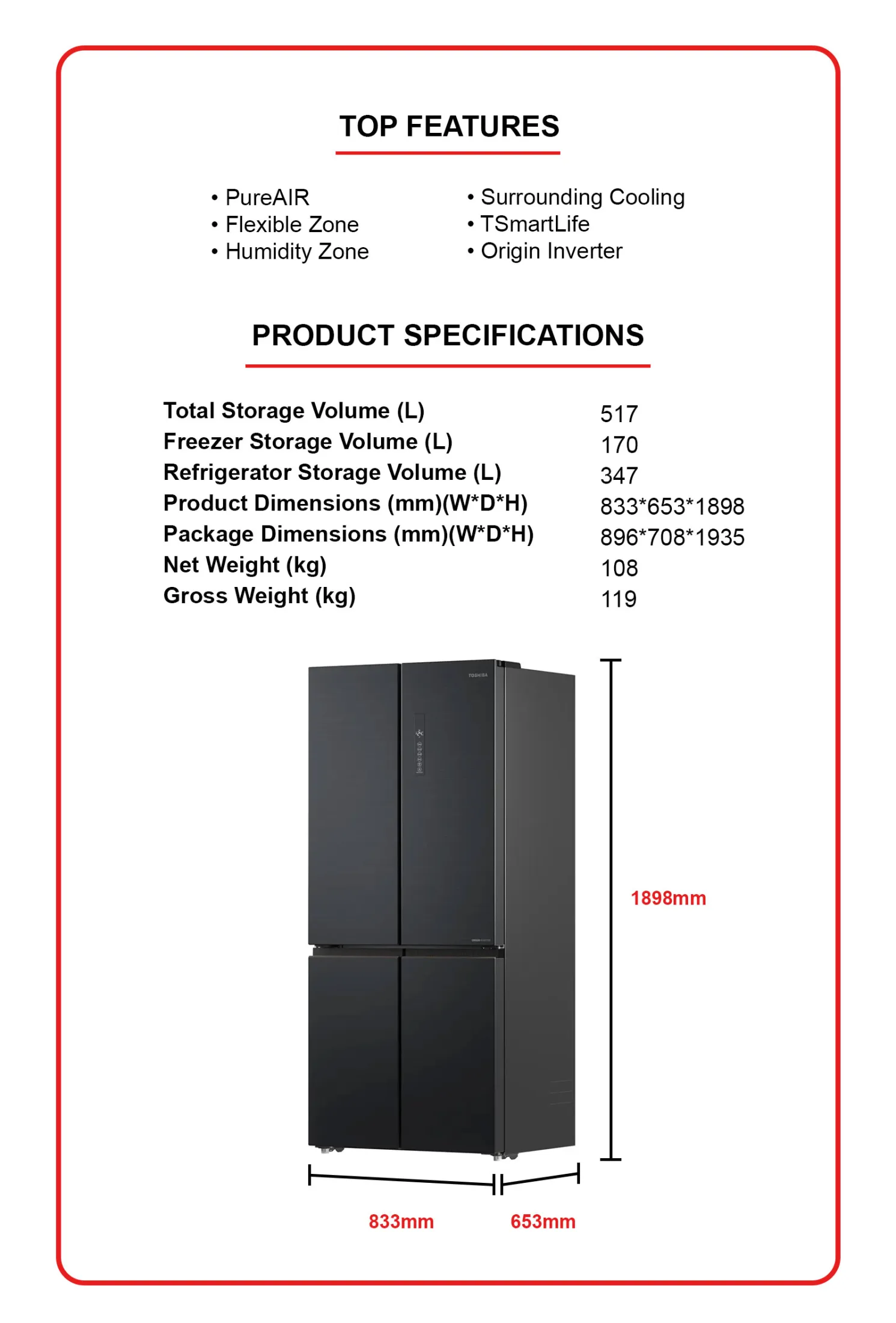 [ETA END NOV'25] GR-RF677WI-PMX(06) 517L FRENCH DOOR FRIDGE