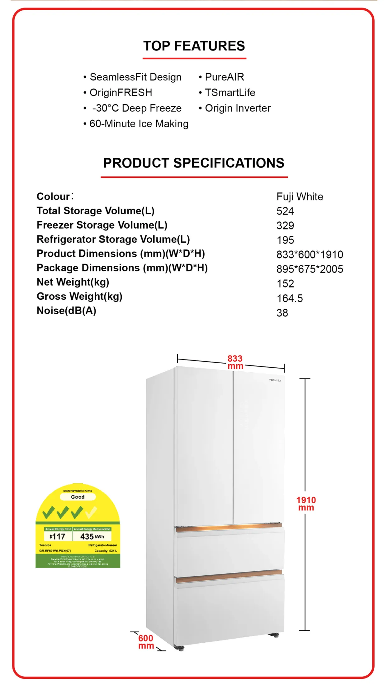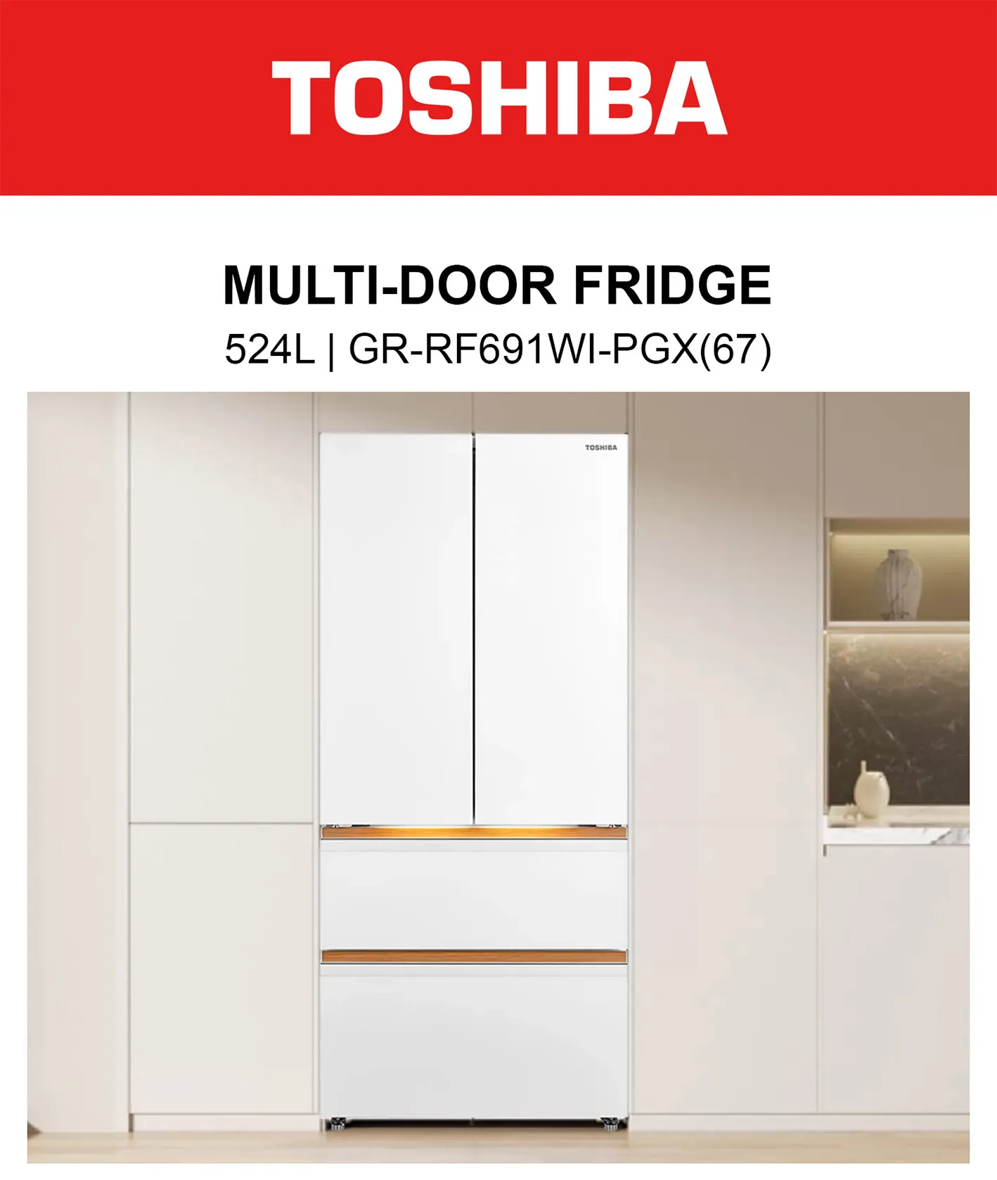 GR-RF691WI-PGX(67) 524L JAPANDI FRENCH DOOR FRIDGE / FREE $100 GROCERY VOUCHER REDEEM FROM AGENT