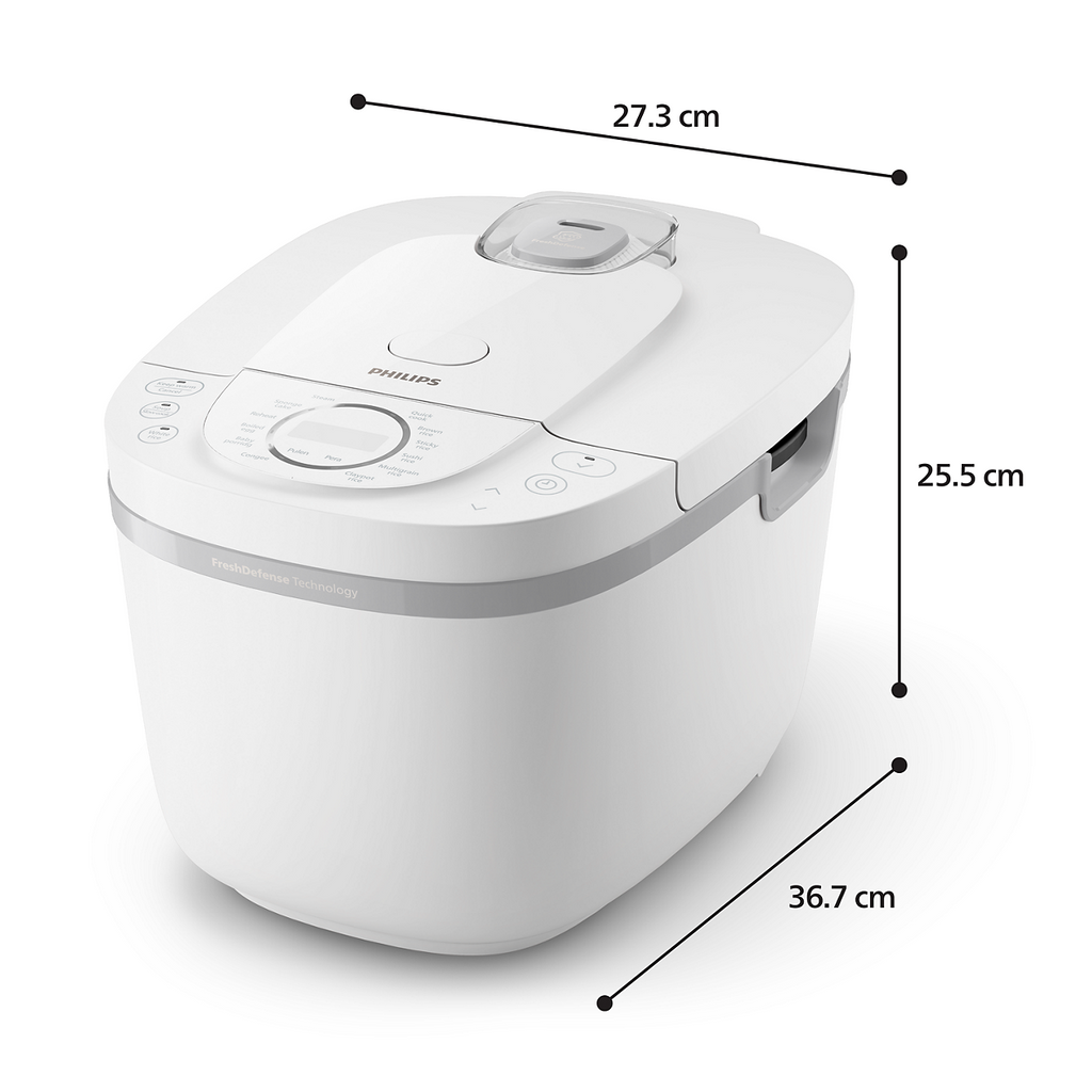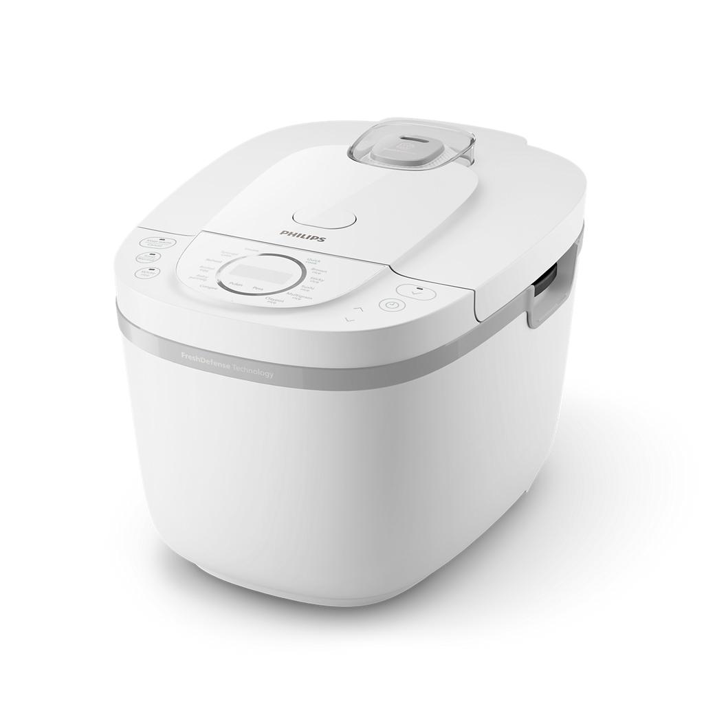 Lock in the perfect level of moisture for white and fluffy rice. Thanks to our innovative FreshDefense technology, featuring a specially designed dual-channel steam valve that seals in extra moisture, the freshness of the rice remains at the ideal 63%* moisture level throughout the day!