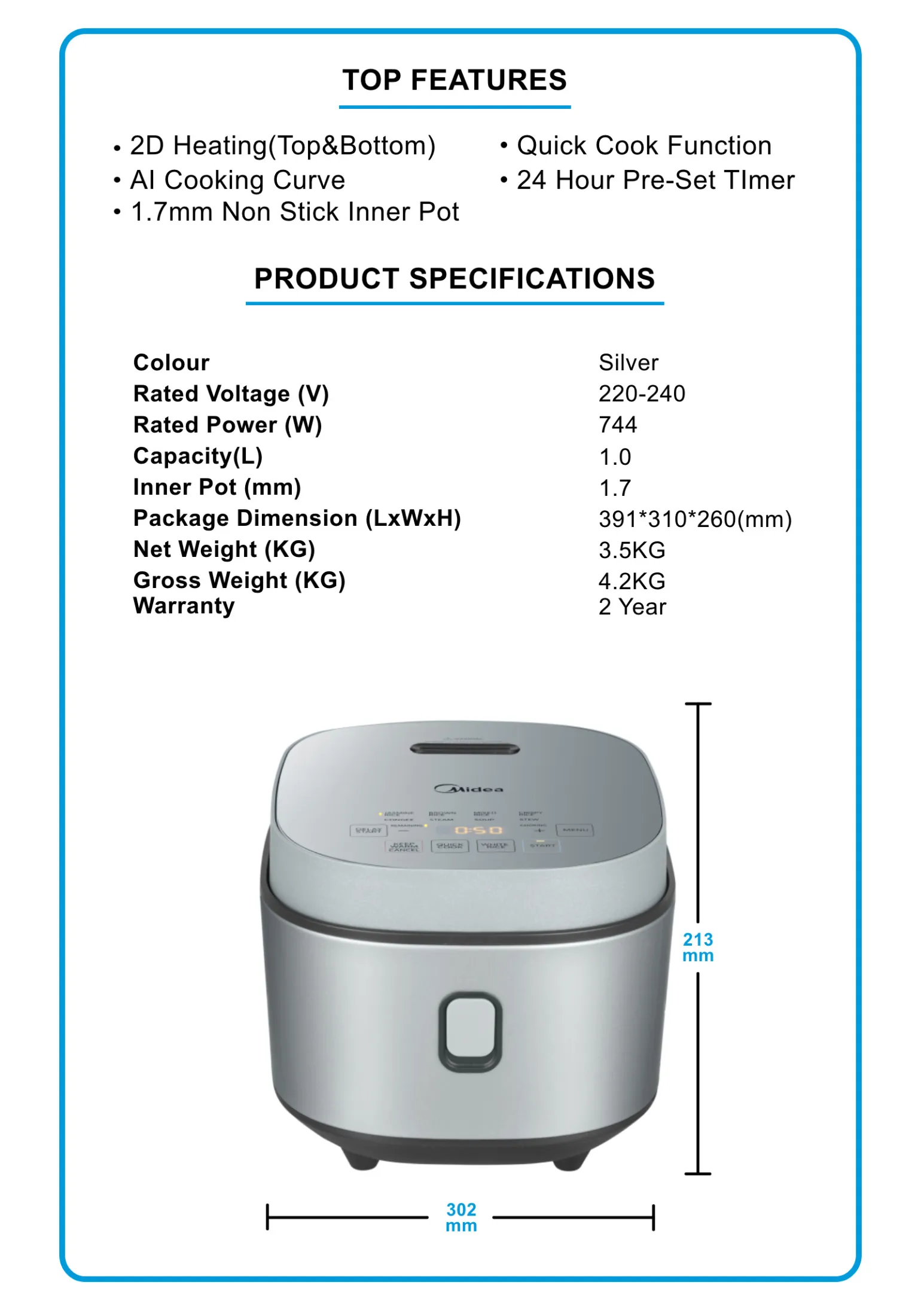 MRD100T2BDG 1L DIGITAL RICE COOKER