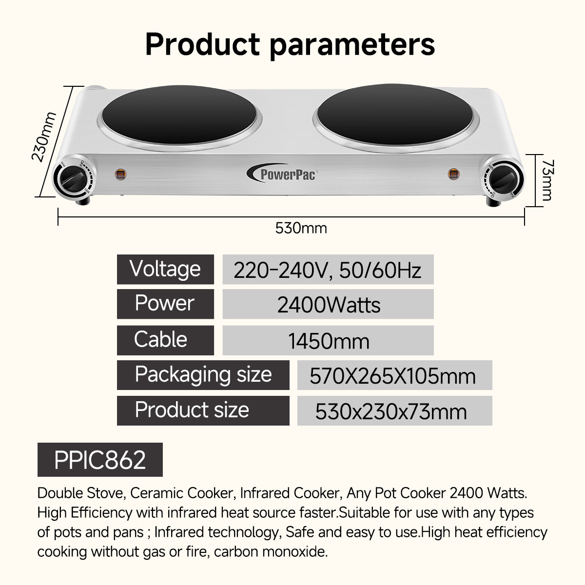 PPIC862 DOUBLE BURNER CERAMIC COOKER