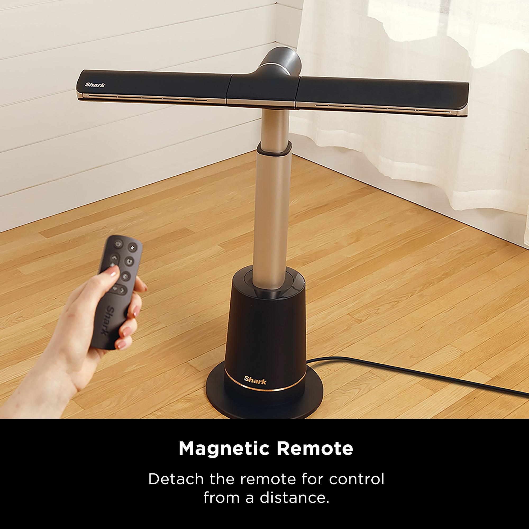 The remote — which magnetically attaches to the fan — lets you: