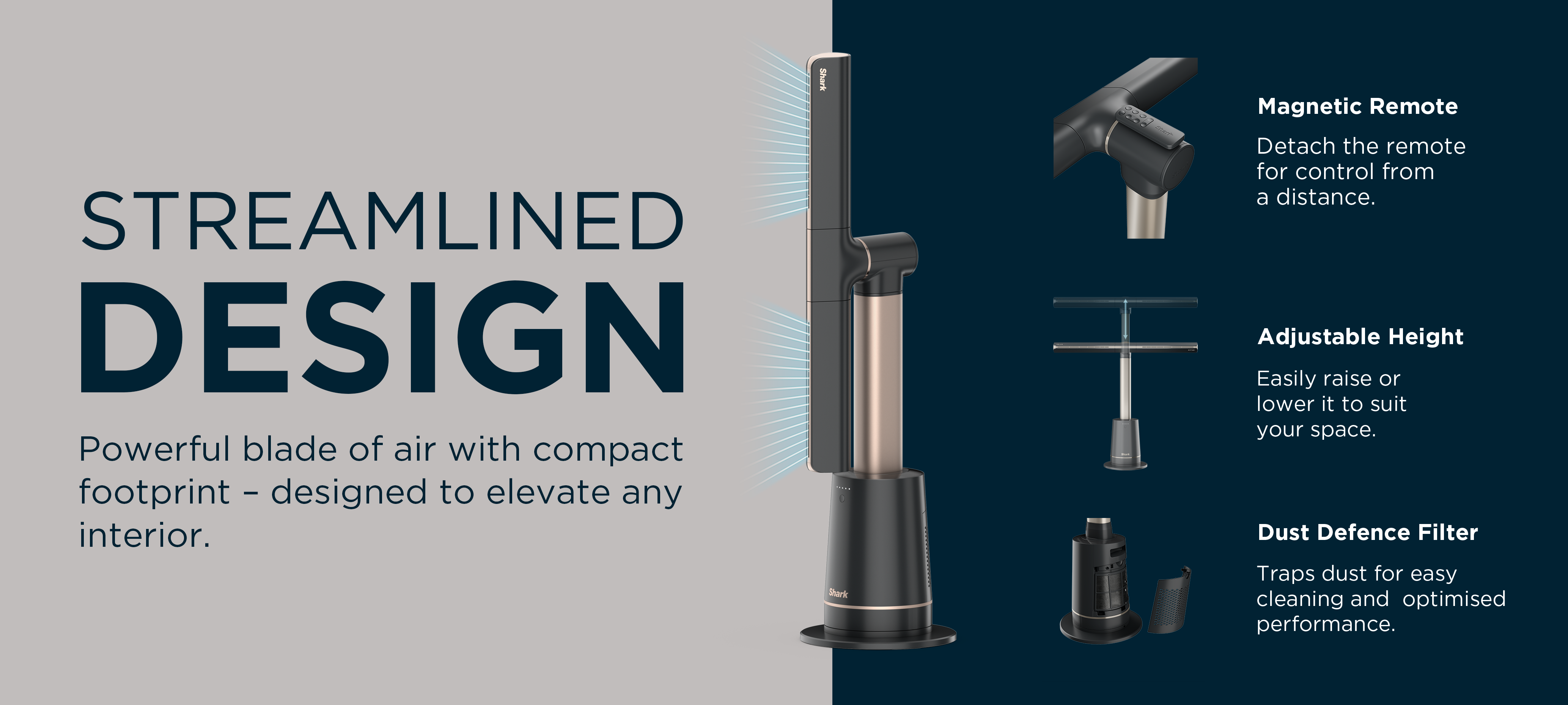 Creates a smooth, continuous stream of air that’s safe for families and easy to clean.